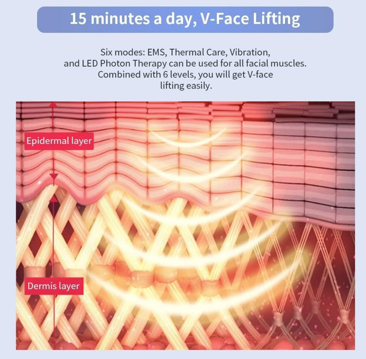 • 【ماساژ چند منظوره صورت V】ابزارهای مراقبت از پوست برقی دارای 6 حالت هستند، به طوری که فاسیا و کلاژن دورهای به لیفت شفافی میرسند، گردش خون را فک بهبود میبخشد، از افتادگی پوست جلوگیری میکند، پوست را سفت میکند، دستگاه صورت EMS خاصیت ارتجاعی را بازیابی میکند. پوست را باز می کند و جوانی را به پوست باز می گرداند.