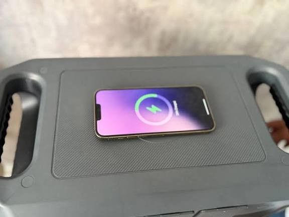 - در بالای دستگاه، صفحهای برای شارژ بیسیم گوشیهای موبایل وجود دارد.