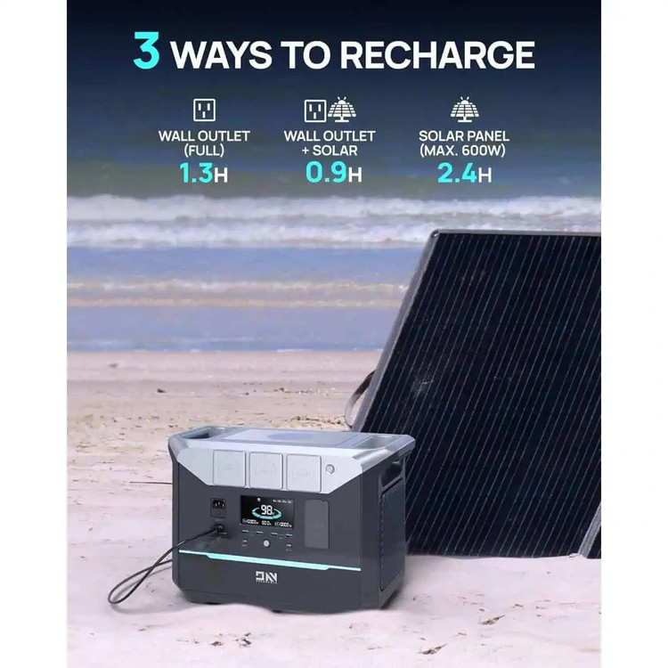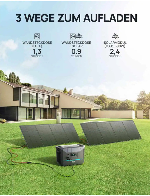 اگر هم قصد استفاده در طبیعت یا کمپینگ رو داری، میتونی از خورشید تا 600 وات ورودی برای شارژ استفاده کنی.